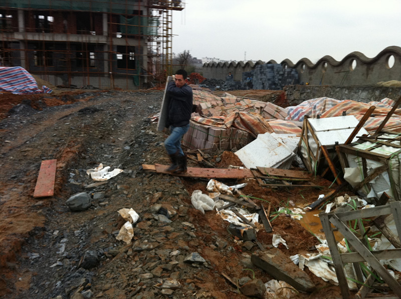 共青城兒童村項(xiàng)目管理人員冒雨工作場(chǎng)景
